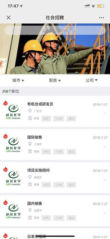 利爾化學招聘